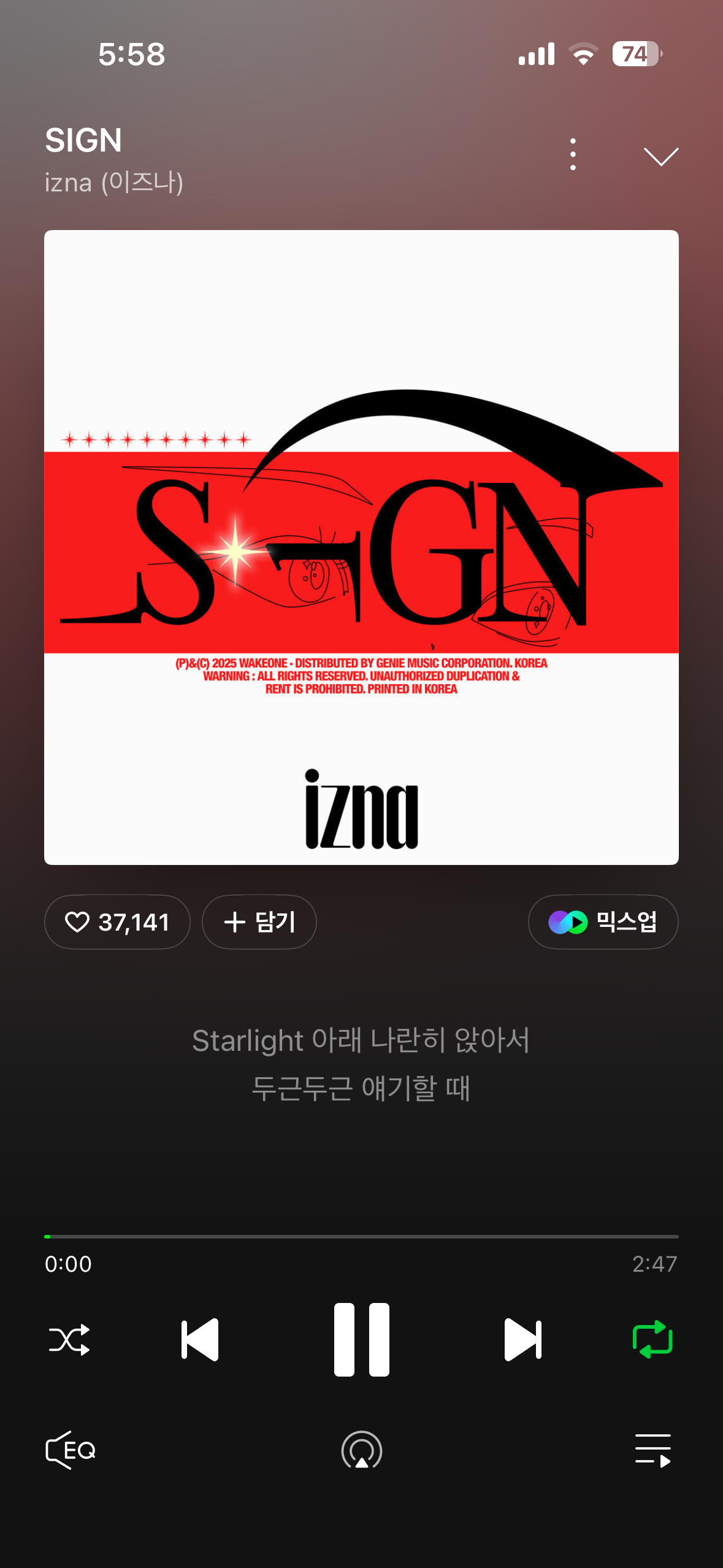 이것만 반복재생해서 미친새끼마냥 듣고 있음